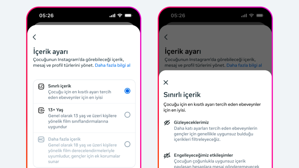 Ebeveynler, daha sıkı bir denetim sağlamak istediklerinde “Kısıtlı İçerik” seçeneğini aktif hale getirebilecekler. Bu ayar devreye girdiğinde, genç hesaplar üzerindeki filtreleme düzeyi artacak ve gençlerin paylaşımlara yorum yapma ya da gelen yorumları görme yetkileri tamamen kaldırılacak.